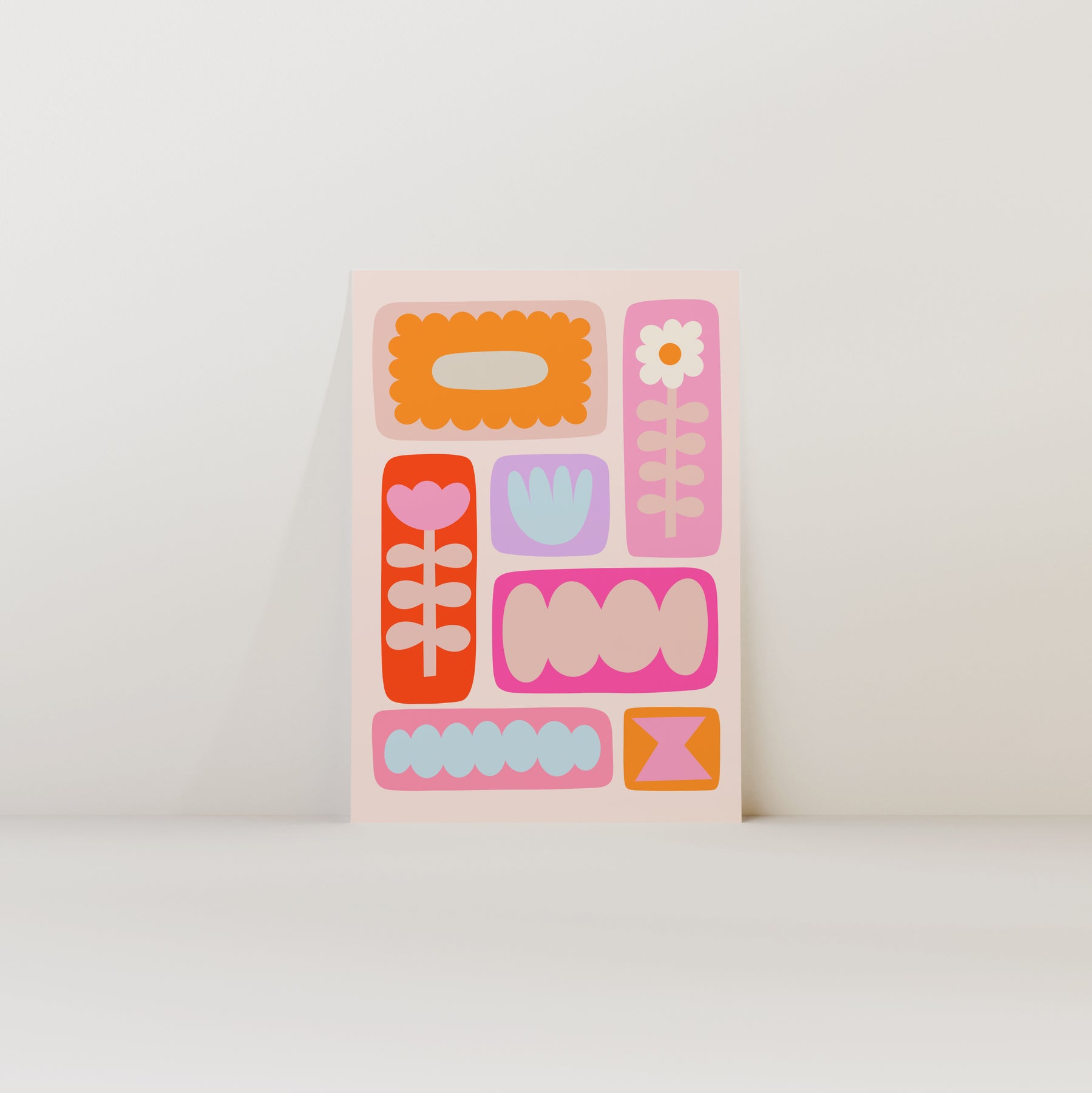 Retro Geometric Flowers Print