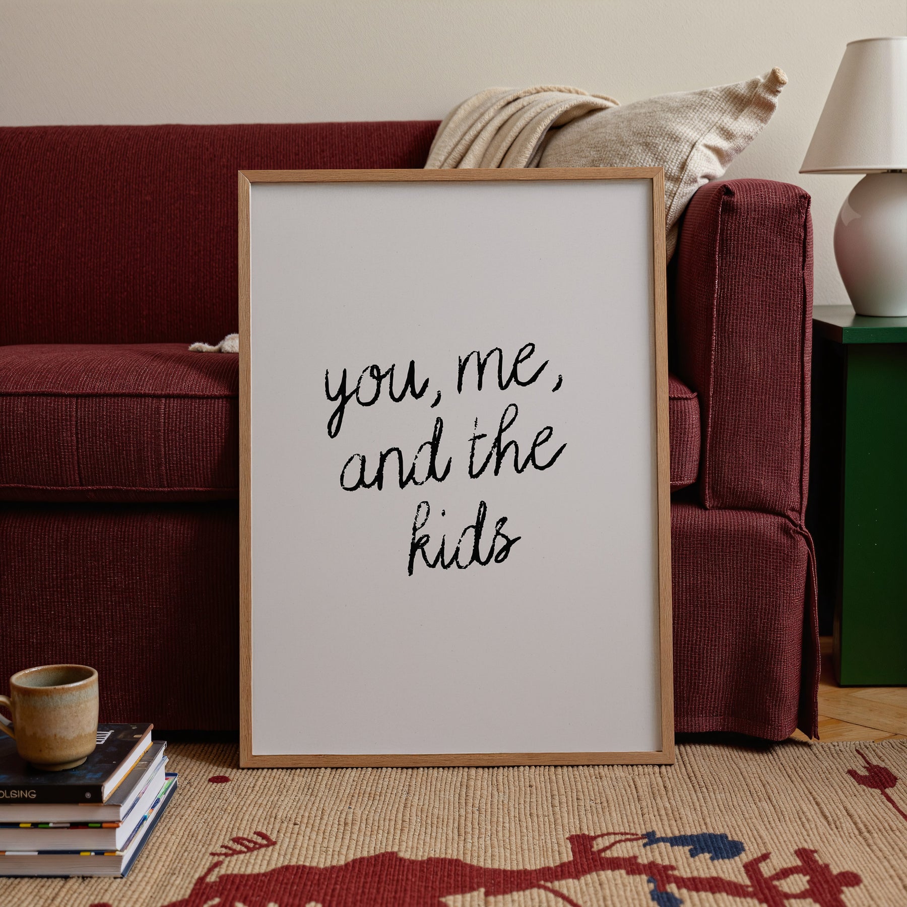 The KIKIANDNIM kids collection is rooted in uplifting our littles, celebrating the silly, and of course, bringing joy to parents and kids alike. The "You, Me, and The Kids " print is perfect for a playroom or living room!