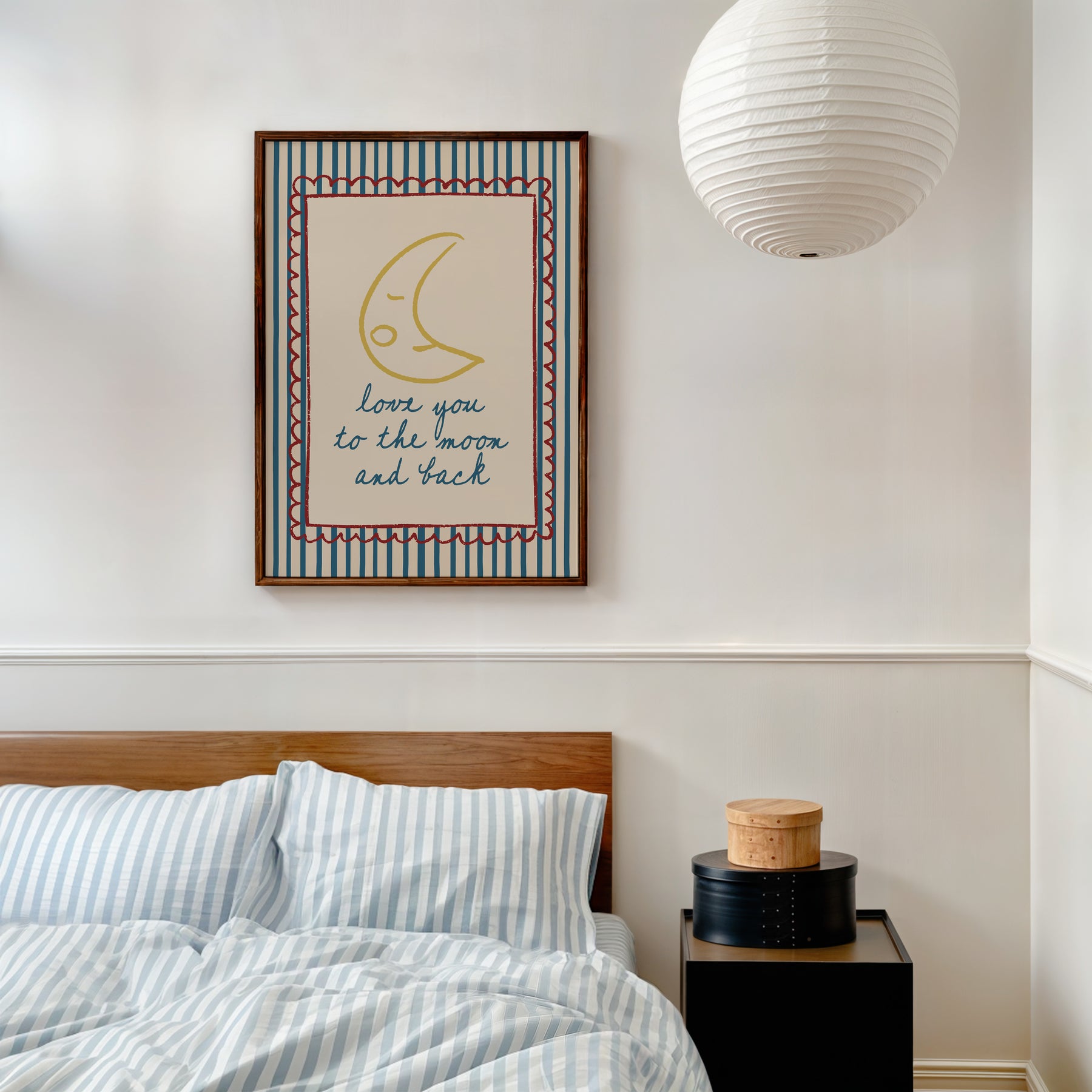 The KIKIANDNIM kids collection is rooted in uplifting our littles, celebrating the silly, and of course, bringing joy to parents and kids alike. The "Love You To The Moon and Back" print is perfect for a toddler's room or baby nursery!