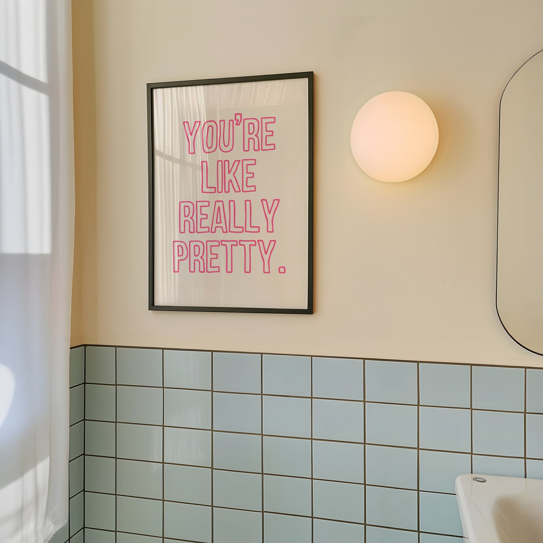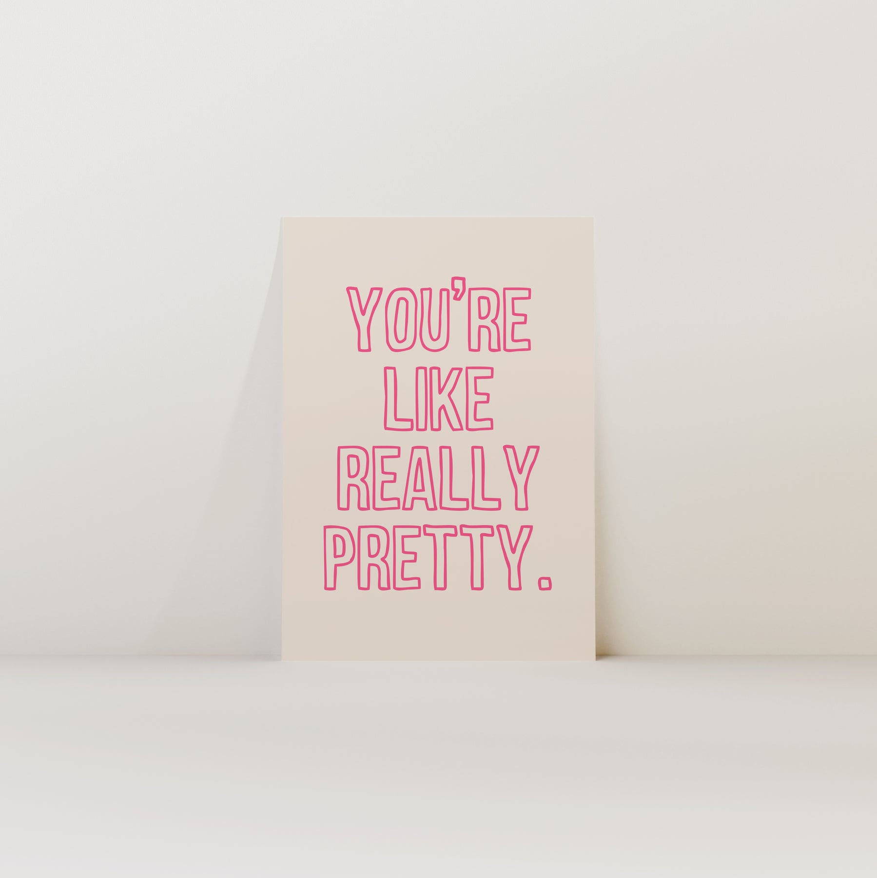 Quick reminder, you are beautiful just the way you are. You're Like Really pretty has become a favorite KIKIANDNIM print. Hang it up in your bathroom, living room, bedroom, office, or anywhere else where you need a quick reminder of just how stunning you are babe!